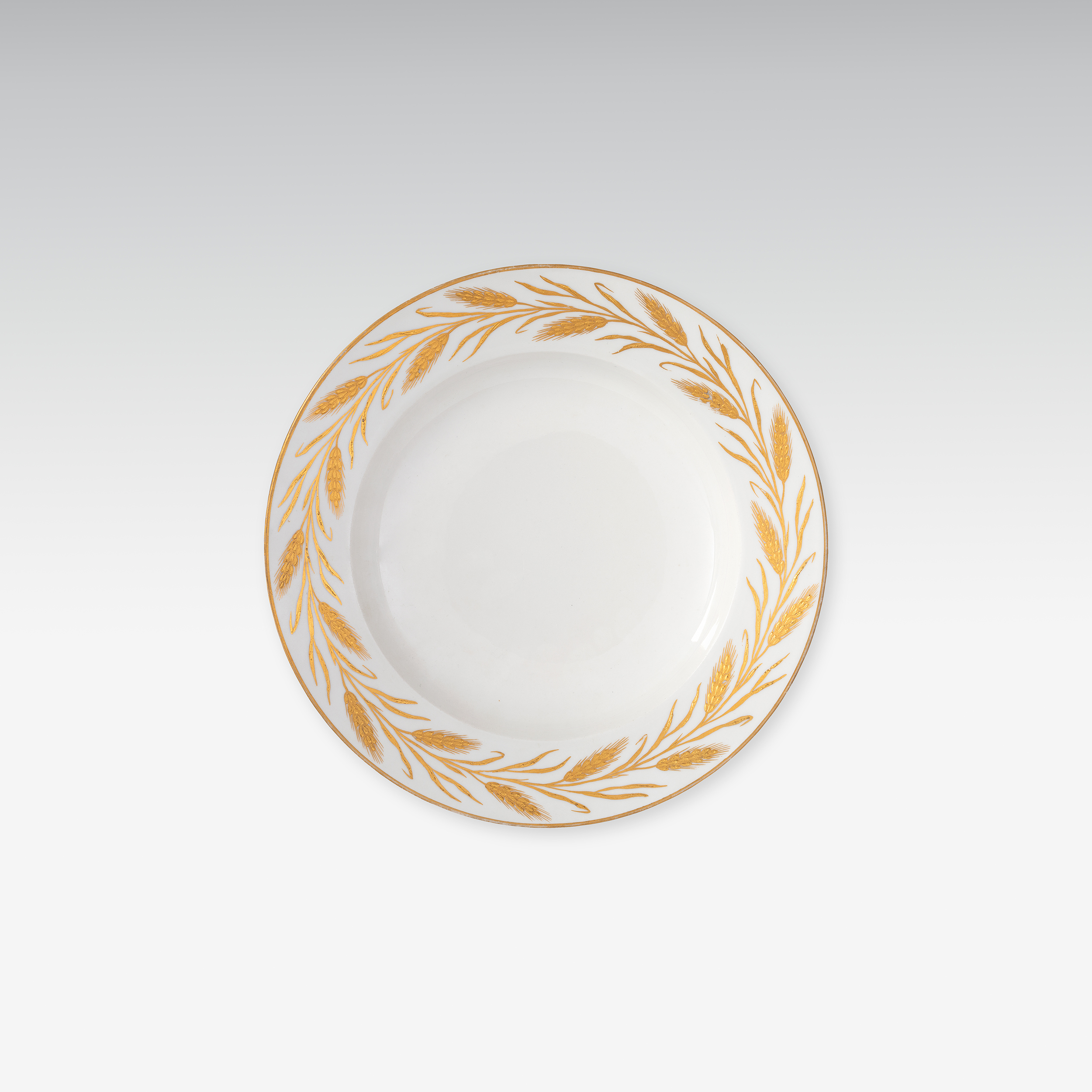 Teller mit Bordüre aus Kornähren in Goldrelief, ein charakteristisches Design der luxuriösen Einfachheit im Stil des frühen 19. Jahrhunderts.