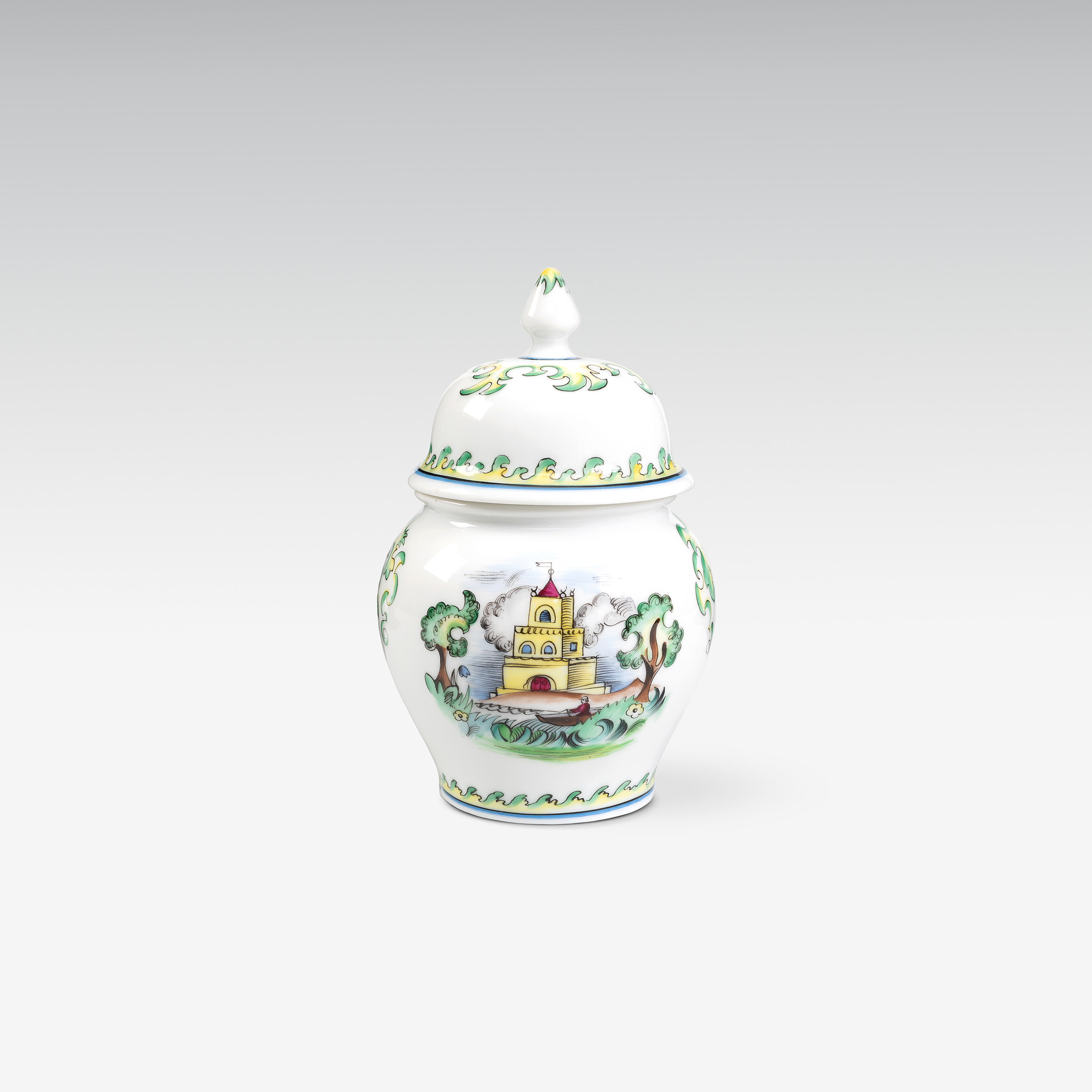 Deckelvase mit Schlossdarstellungen