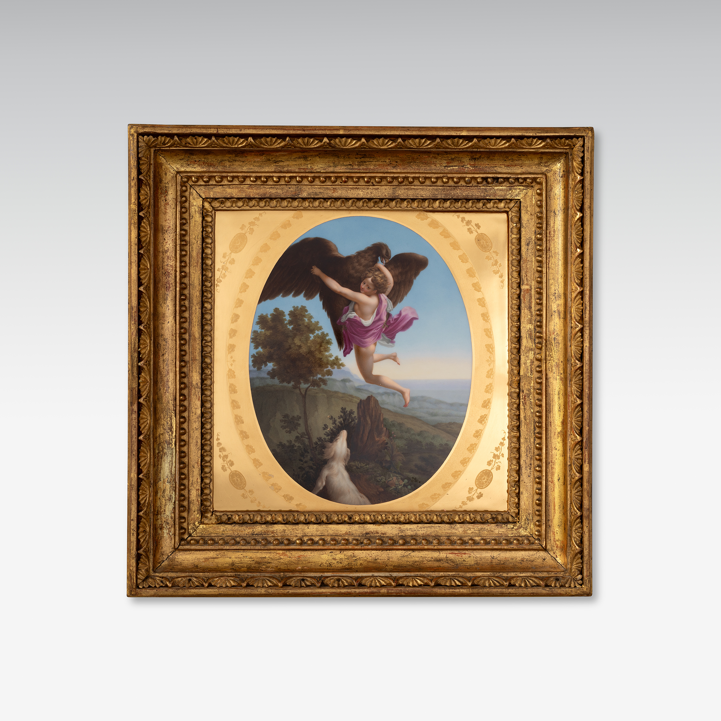 Miniaturkopie auf Porzellanplatte, signiert von Historienmaler Laurenz Herr nach Antonio da Correggio in den kaiserlichen Sammlungen (heute Kunsthistorisches Museum, Wien)