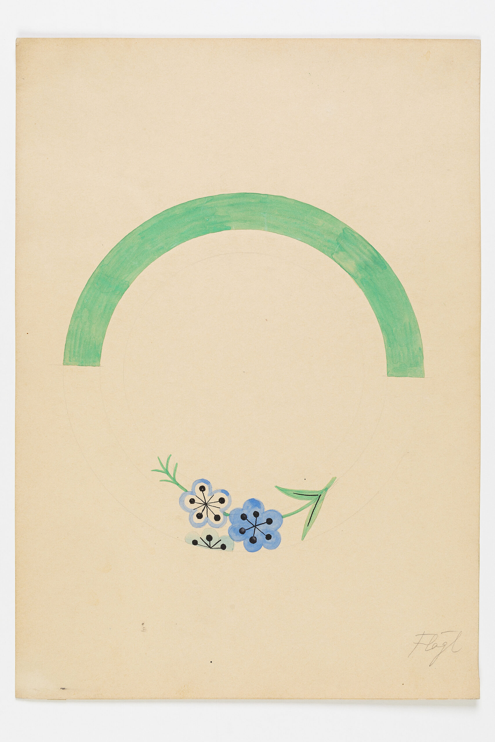 Dekore für Service Form 68. Luftblau war eine der beliebtesten Porzellanfarben der 1920er Jahre. Mathilde Flögl verwendete den Ton oft für ihre erfrischenden floralen Entwürfe.