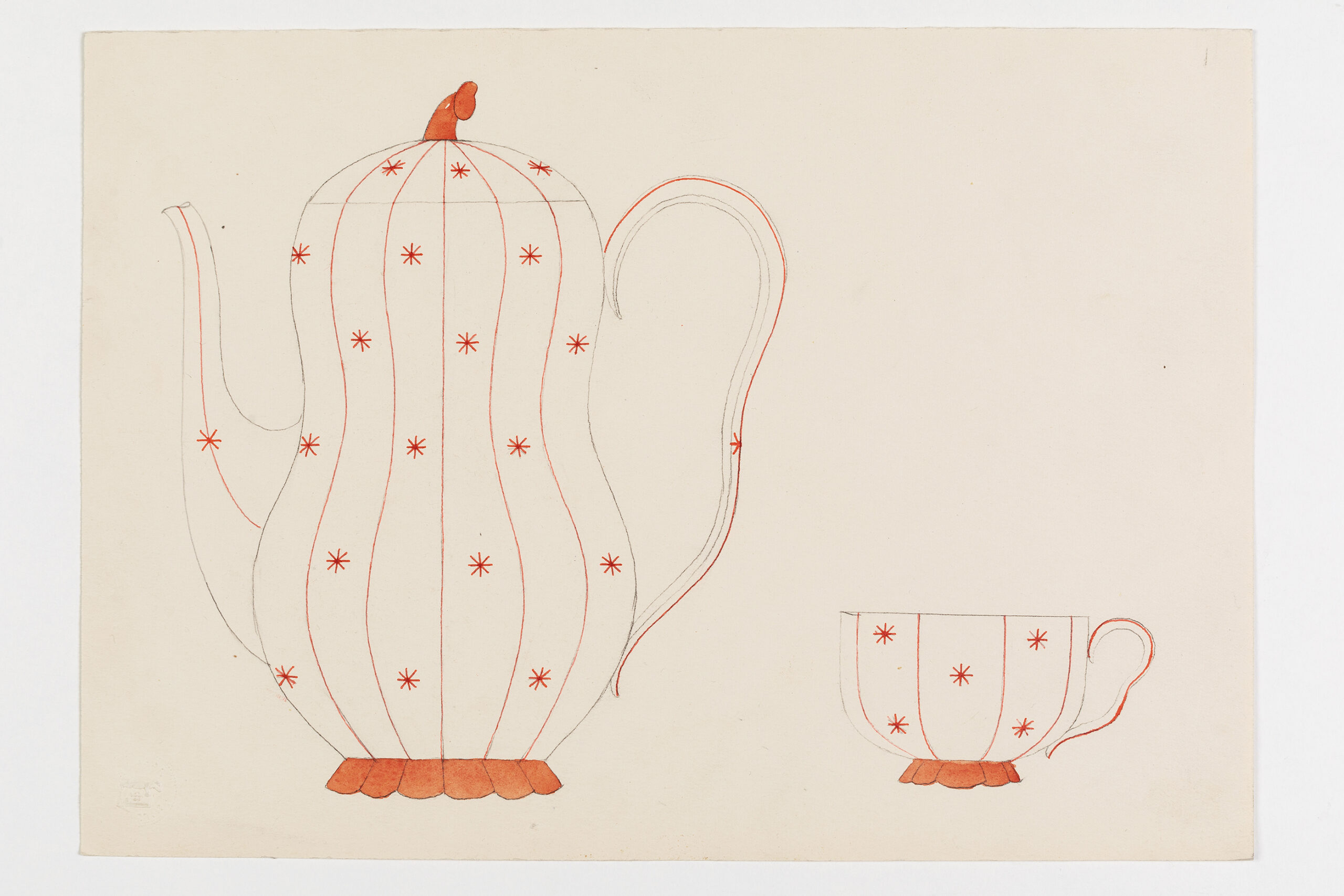 Entwurf: Mokkaservice Melone, Rote Linien und Sterne