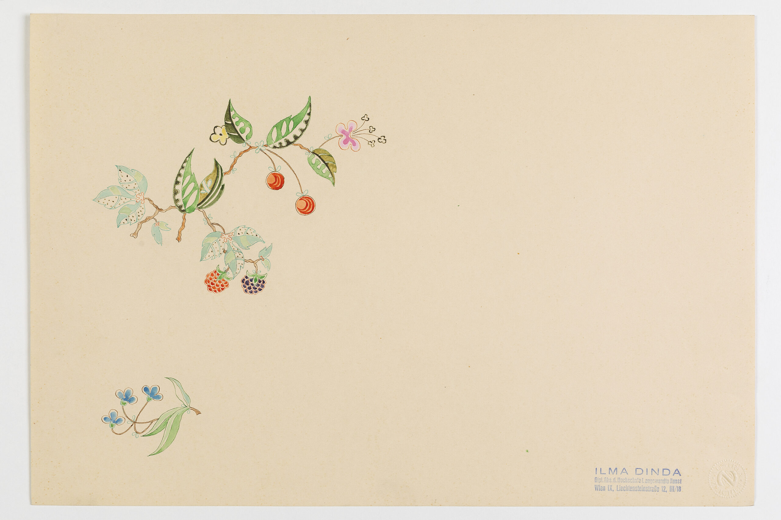 Die "moderne" Interpretation von Blüten und Früchten in perfekter malerischer und grafischer Ausführung war eine Spezialität von Ilma Dinda.Die "moderne" Interpretation von Blüten und Früchten in perfekter malerischer und grafischer Ausführung war eine Spezialität von Ilma Dinda.