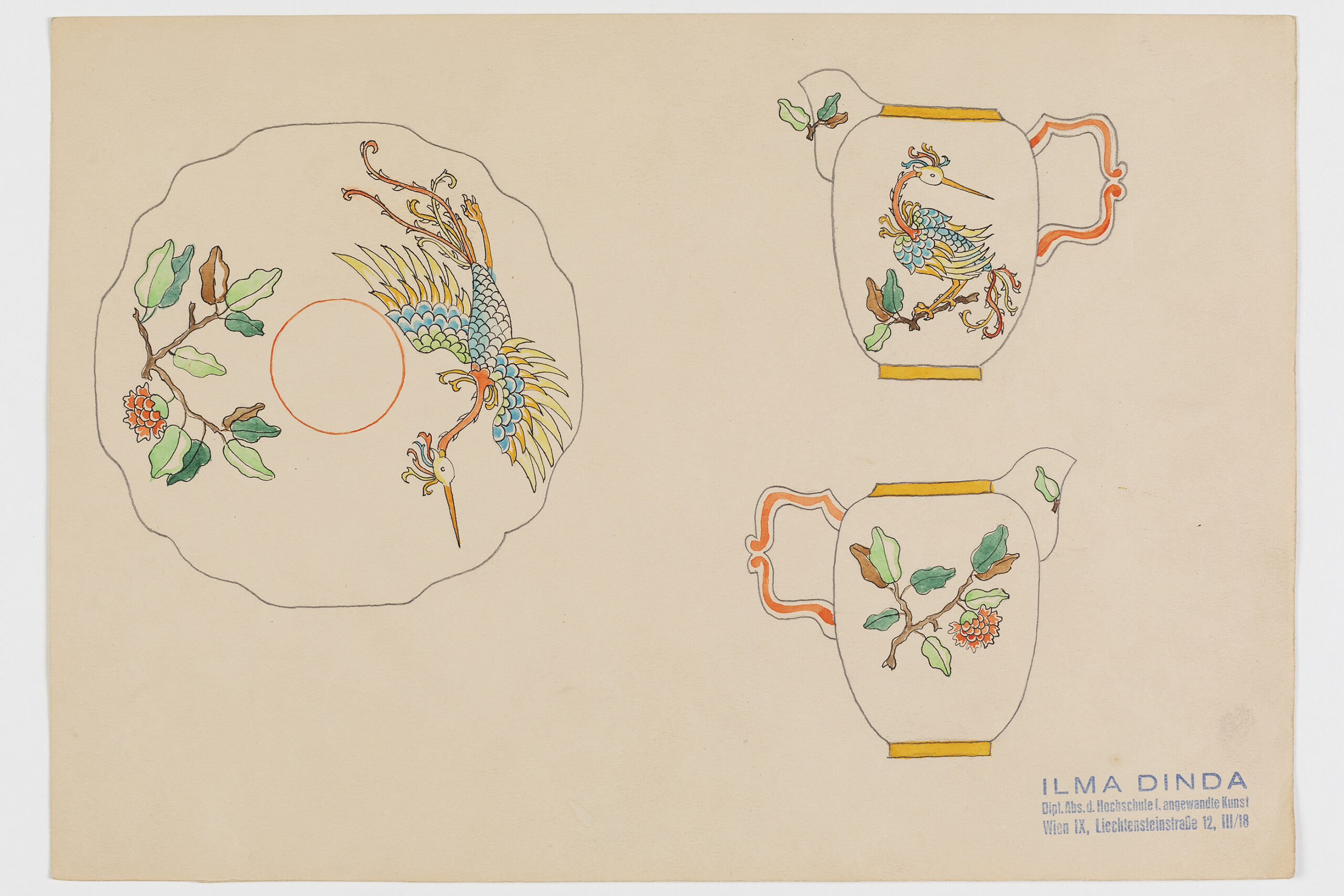 Entwurf: Teeservice mit Fantasievögeln und Pflanzendekor 2