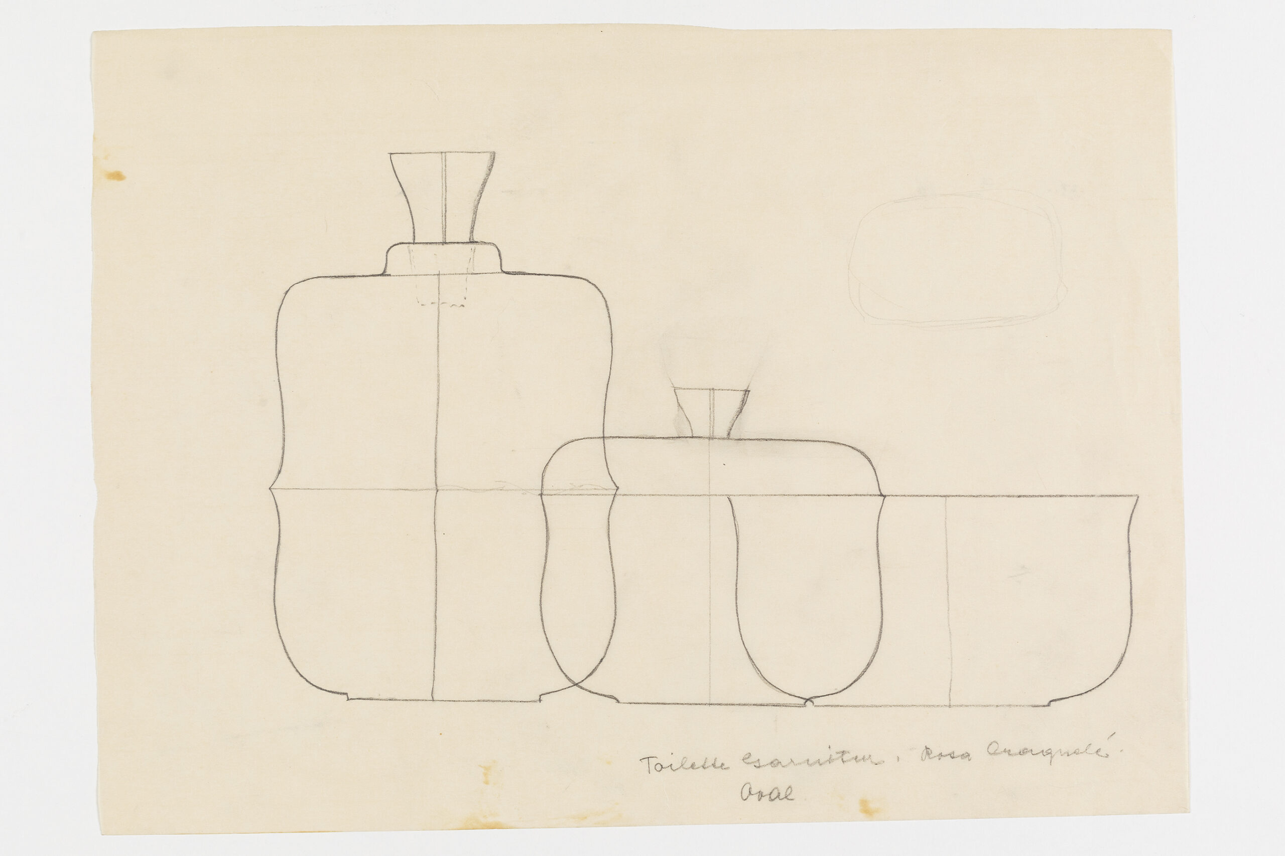 Entwurf: Toilettegarnitur aus drei Objekten mit rosa Cracquelé, unbekannte:r Entwerfer:in, um 1930/35
