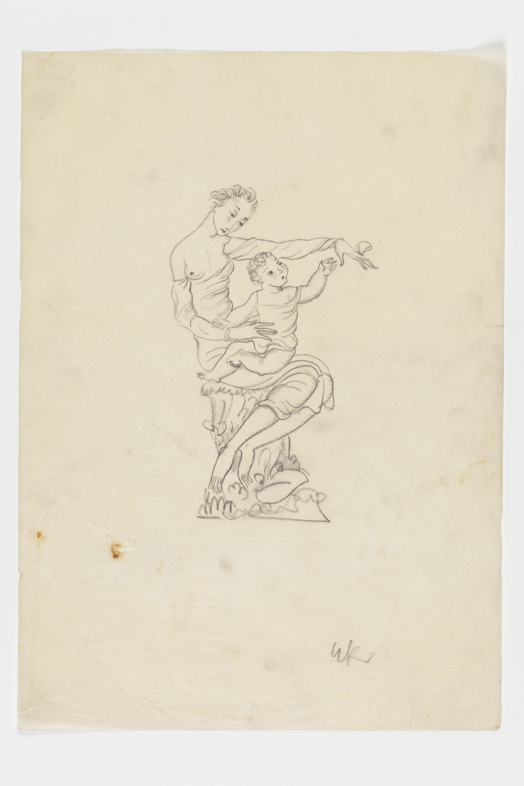 Entwurf für eine figürliche Plastik einer Mutter mit Kind und Schmetterling, monogrammiert ER. (Ena Rottenberg).