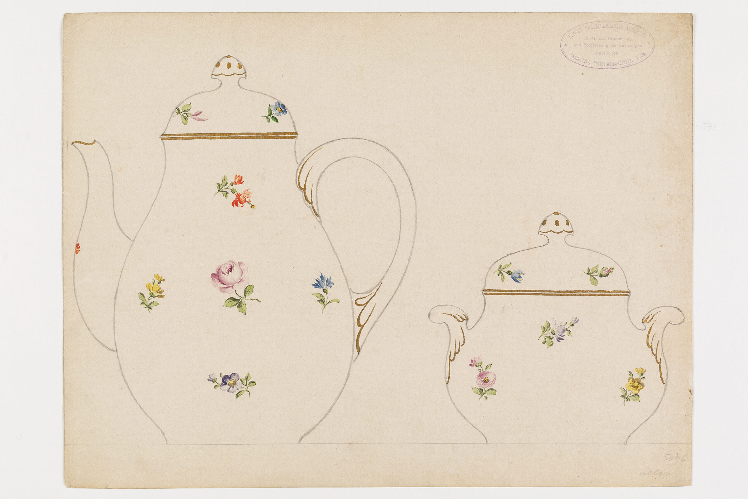 Entwurf: Porzellandekor mit polychromen Streublumen