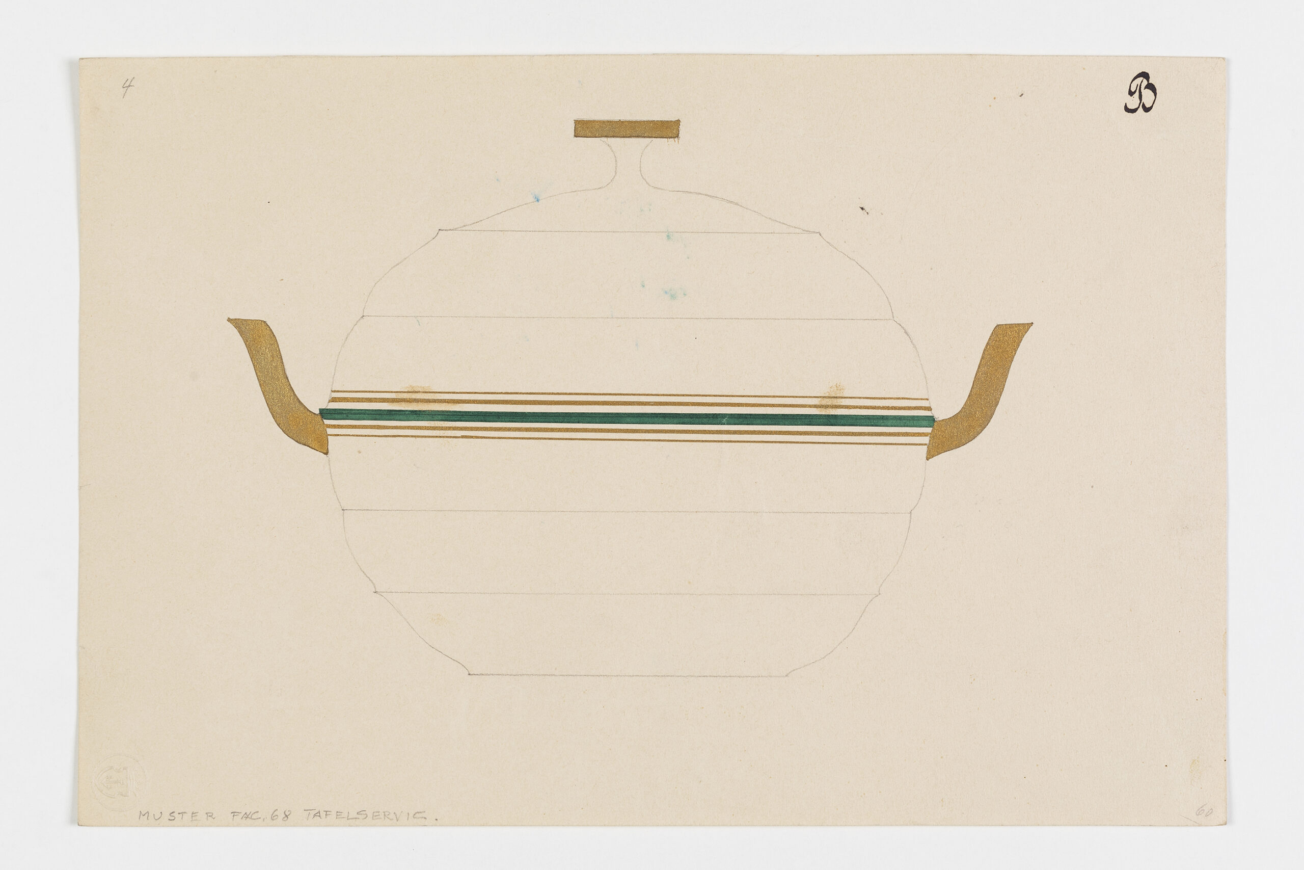 Entwurf: Dekor in Grün und Gold für eine Deckelterrine