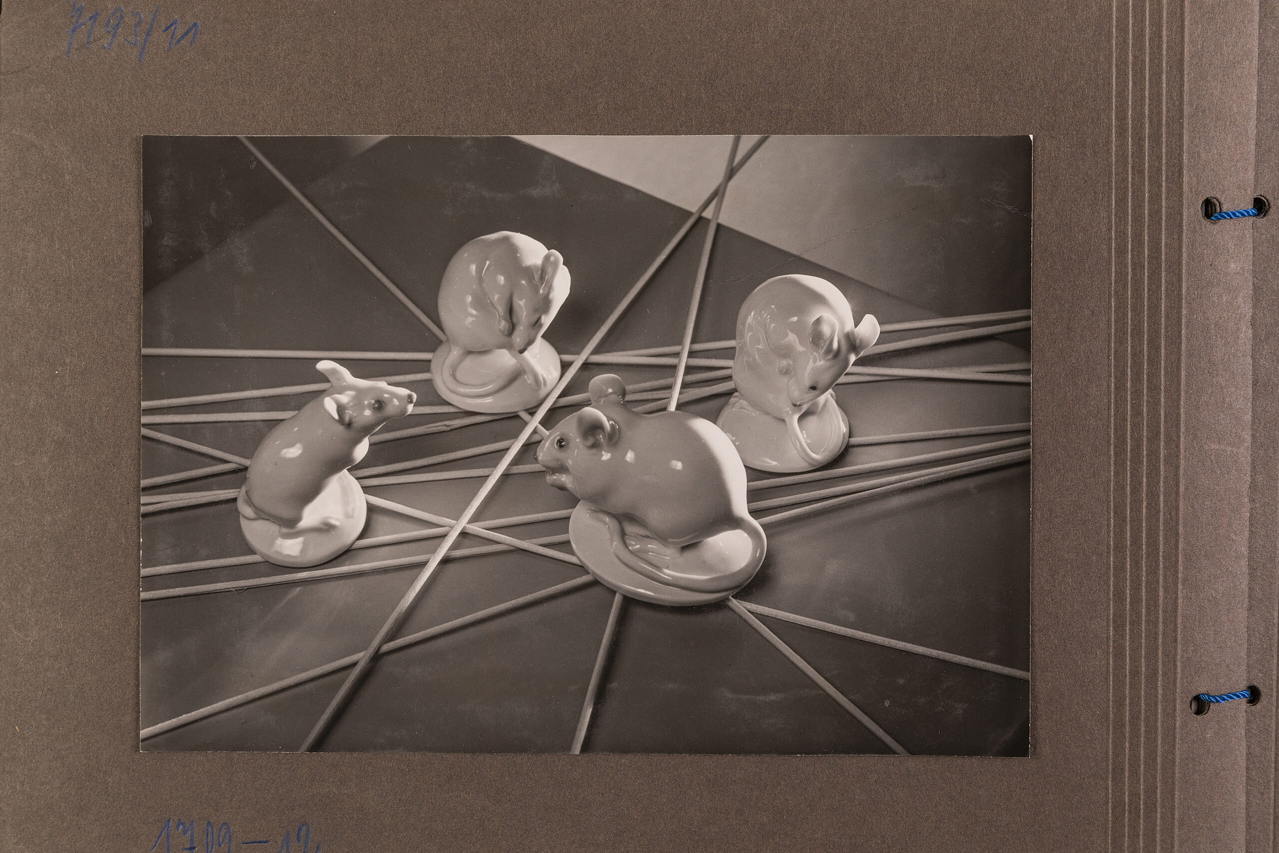 Vier Mäuse der Modell Nrn. 1709-1712, Entwurf von Robert Ullmann um 1935, spätere Ausführung der Porzellanmanufaktur Augarten um 1955.