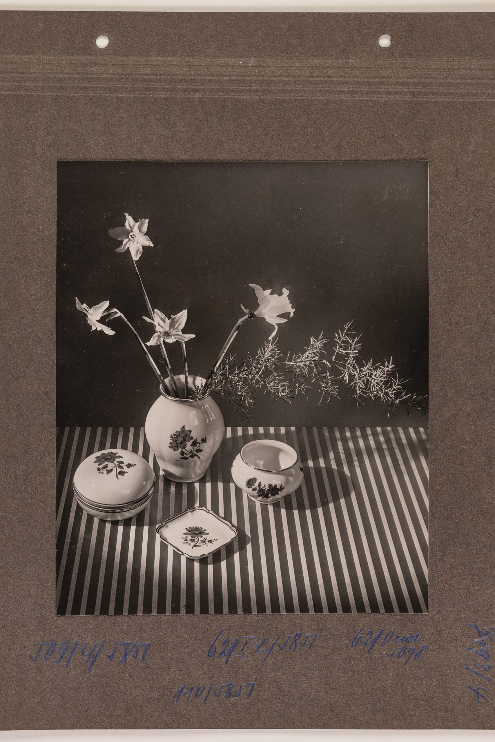 Historische Werbefotografie: Dose, zwei Vasen und Schälchen